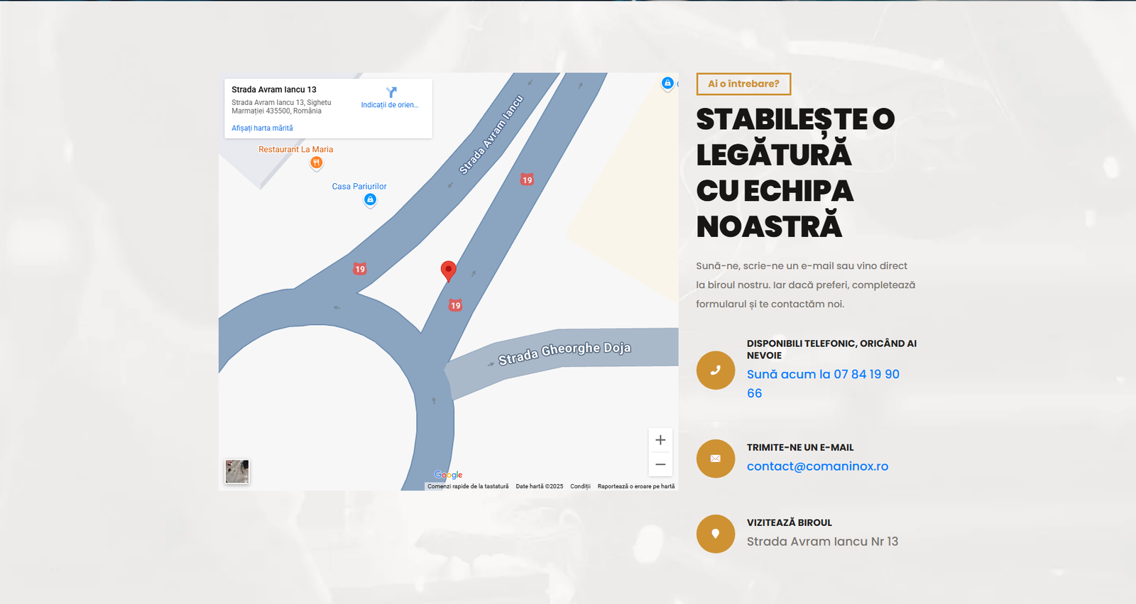 Formulare de Contact Eficiente: Am integrat formulare de contact strategice în diverse puncte ale site-ului pentru a facilita solicitările de informații și ofertele personalizate.