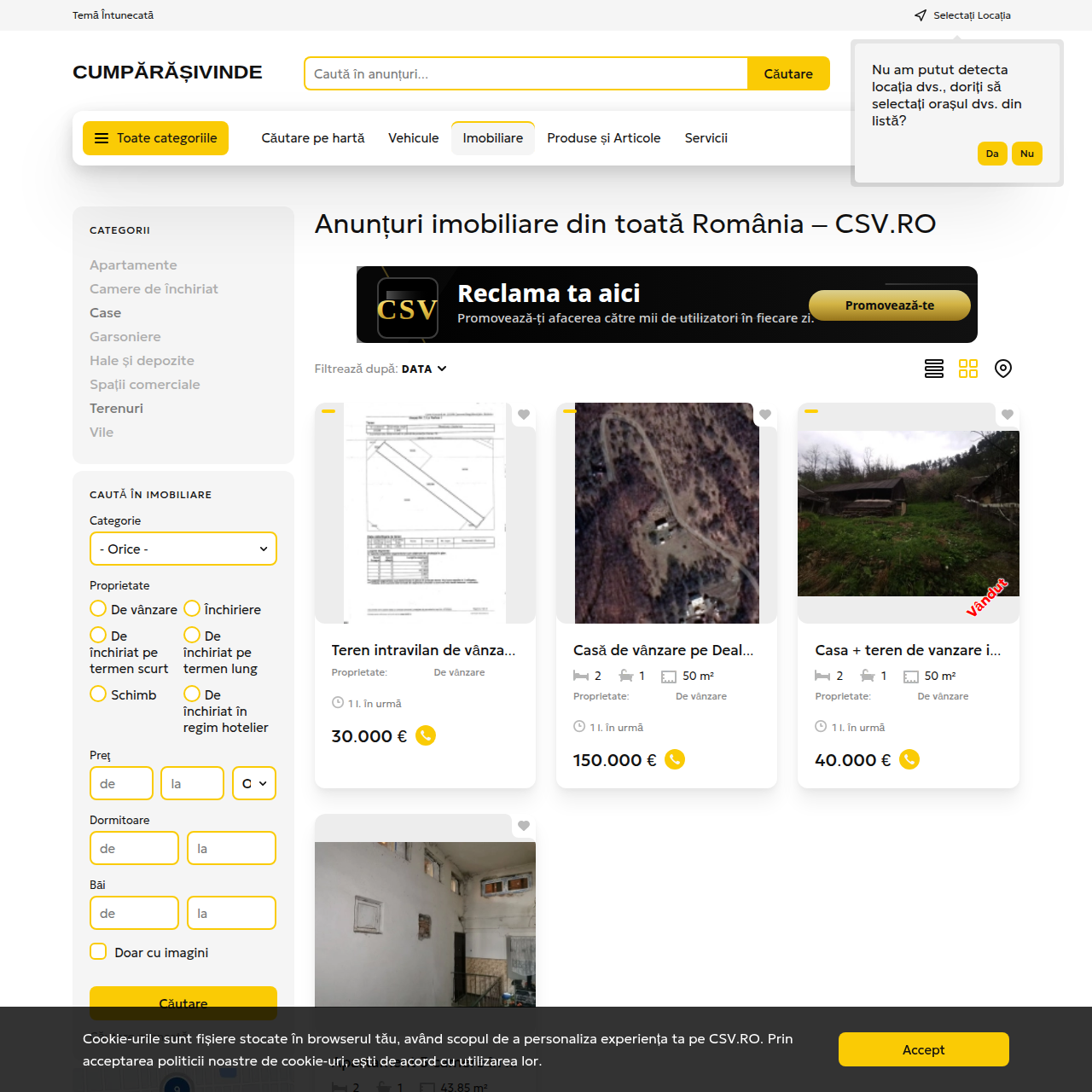 • Imobiliare – apartamente, case, garsoniere, vile, terenuri, spații comerciale.